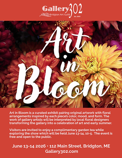 Immerse yourself in a world of creativity and inspiration at Gallery 302, right on Main Street in Bridgton. Explore our diverse collection of artworks and experience the beauty of visual arts like never before. Sign up for classes, attend functions, visit the gallery and have a look around!